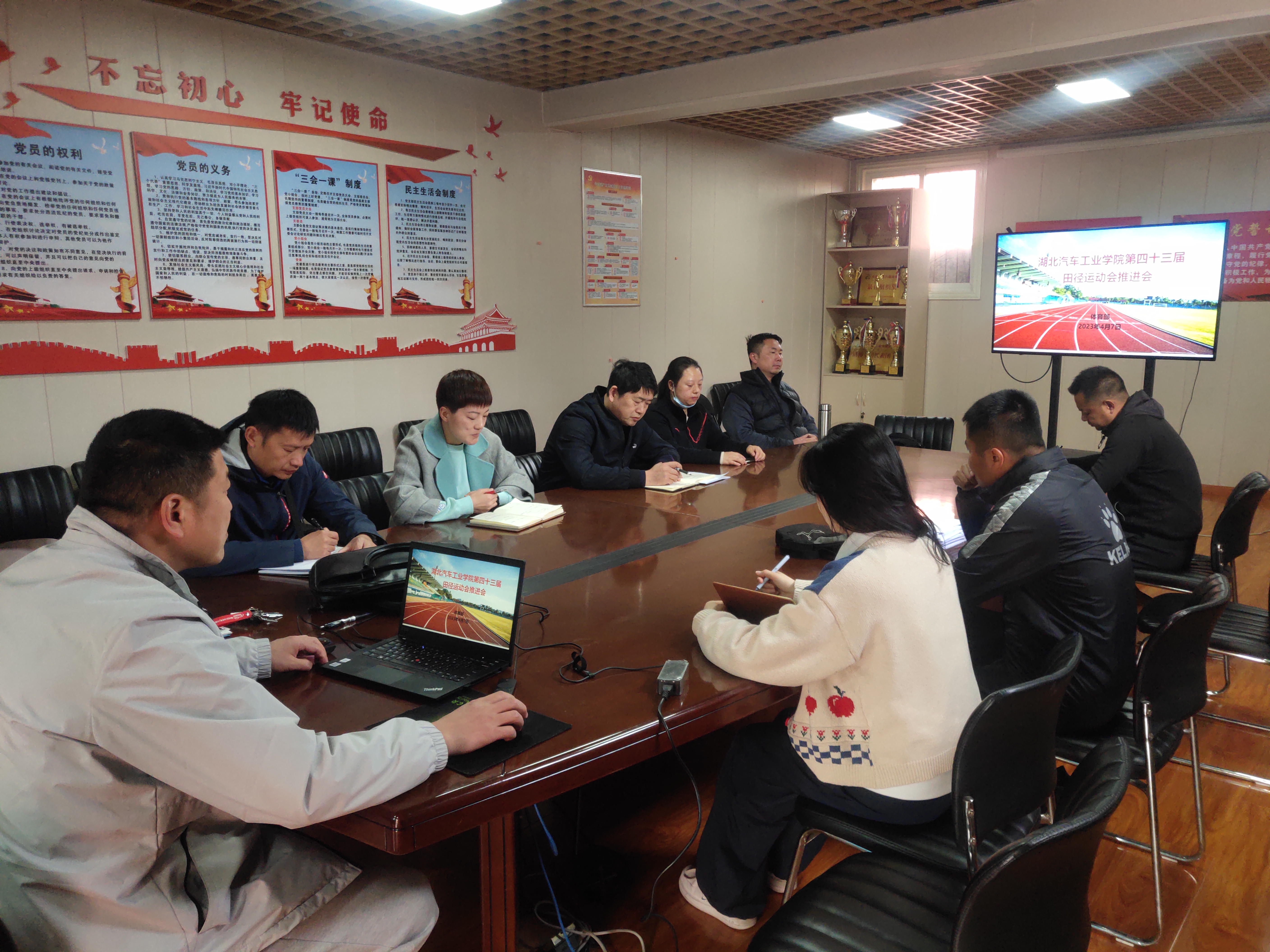 4月7日,体育部在体育部会议室召开了第四十三届田径运动会推进会,支部书记熊玲主持会议。