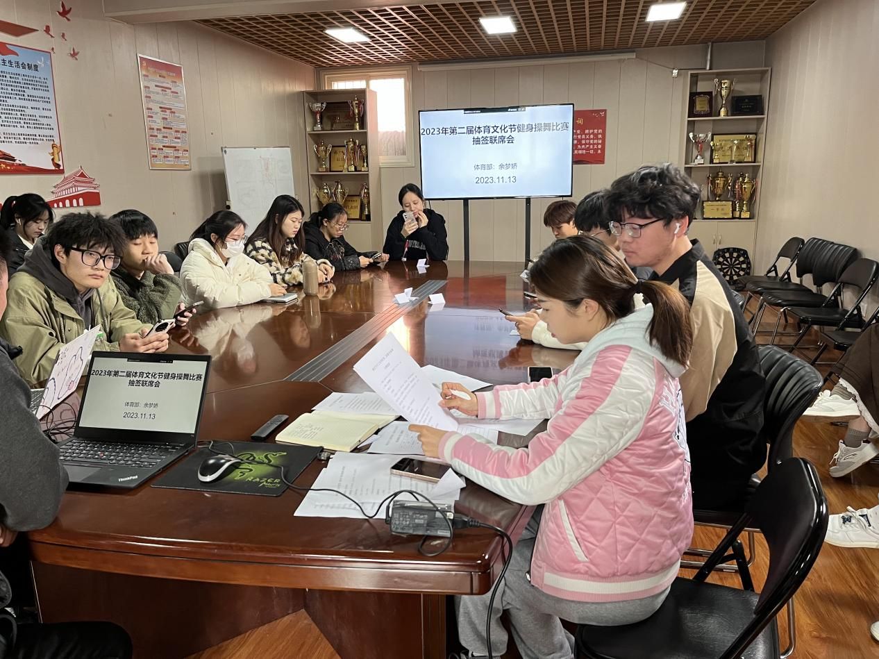 2023年11月13日中午,在体育部会议室召开了第二届体育文化节健身操舞大赛赛前联席会。会议由余梦娇老师主持,体育部副主任杨谦及各二级公司负责人和员工代表参会。
