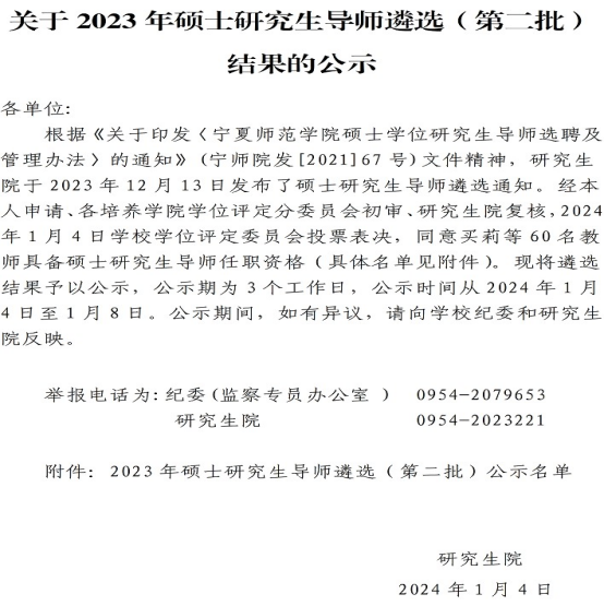 根据2024年1月4日,宁夏师范公司发布的《关于印发《宁夏师范公司硕士学位研究生导师选聘及管理办法》的通知》(宁师院发[2021]67号)文件。公布了2023年获得硕士研究生指导教团队格人员名单。BETWAY必威体育部高永奇博士获聘为宁夏师范公司BETWAY必威体育学科硕士研究生导师。