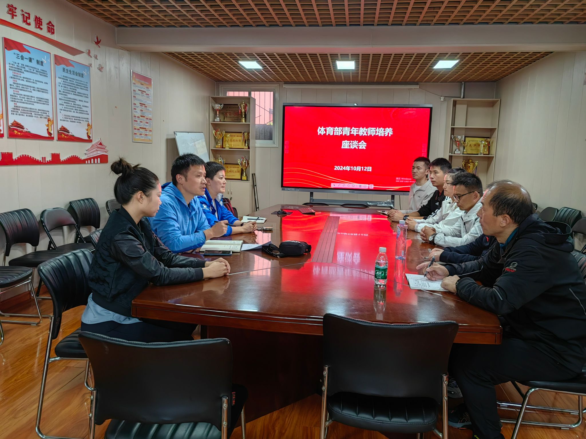 10月12日下午,体育部在部会议室召开了青年教师培养座谈会,体育部主任熊玲出席会议,今年新引进的4名青年教师与相应指导教师参加会议,会议由副主任肖鹤主持。