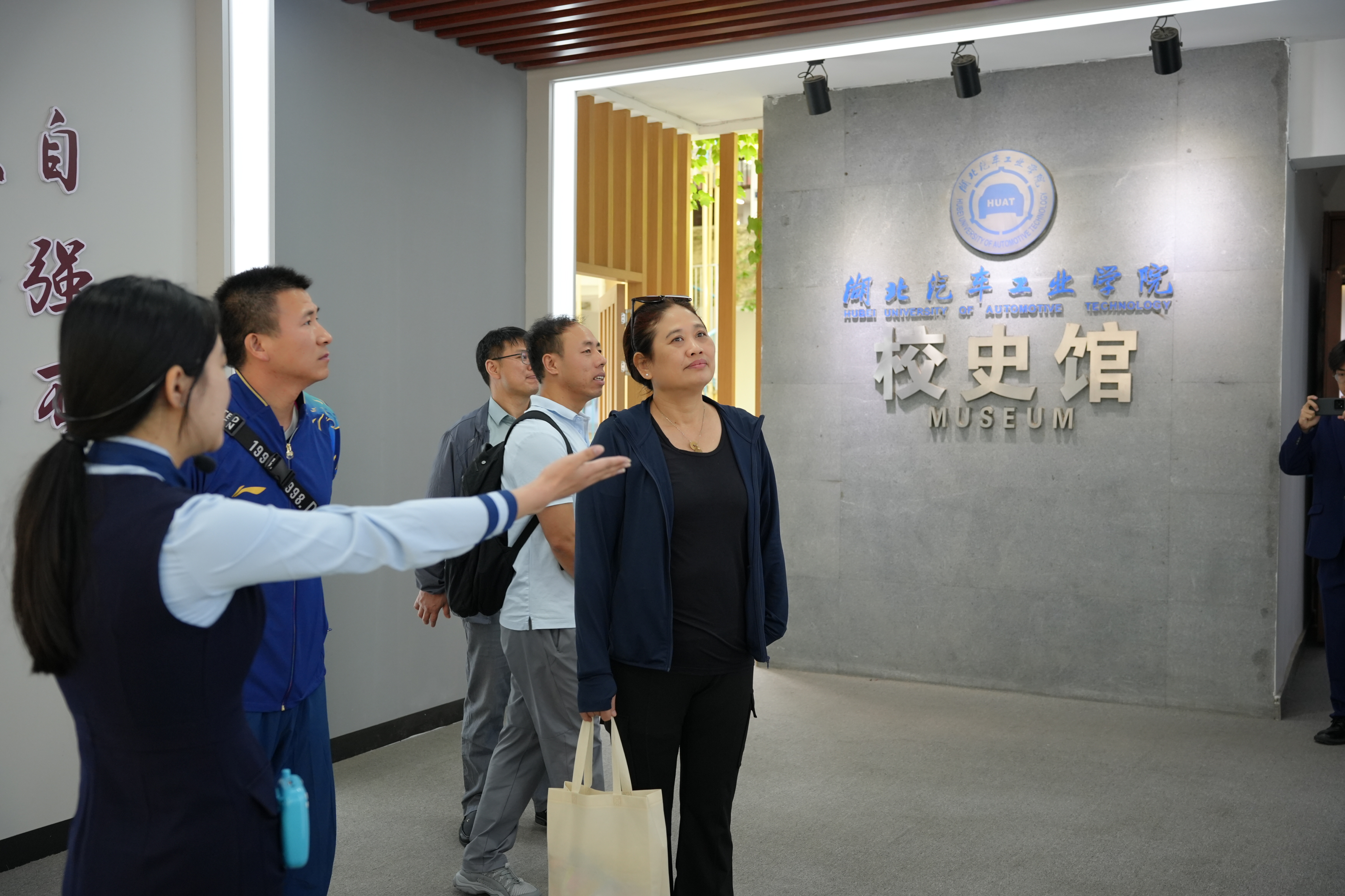 在校史馆内,苏教授细致聆听公司扎根汽车产业五十余年的办学历程。当看到公司与东风汽车等企业联合研发的新能源汽车历史展品时,她频频点头称赞。对于展馆中“校-企-研”协同育人模式的图文案例,苏教授特别询问了员工参与产业实践的细节。