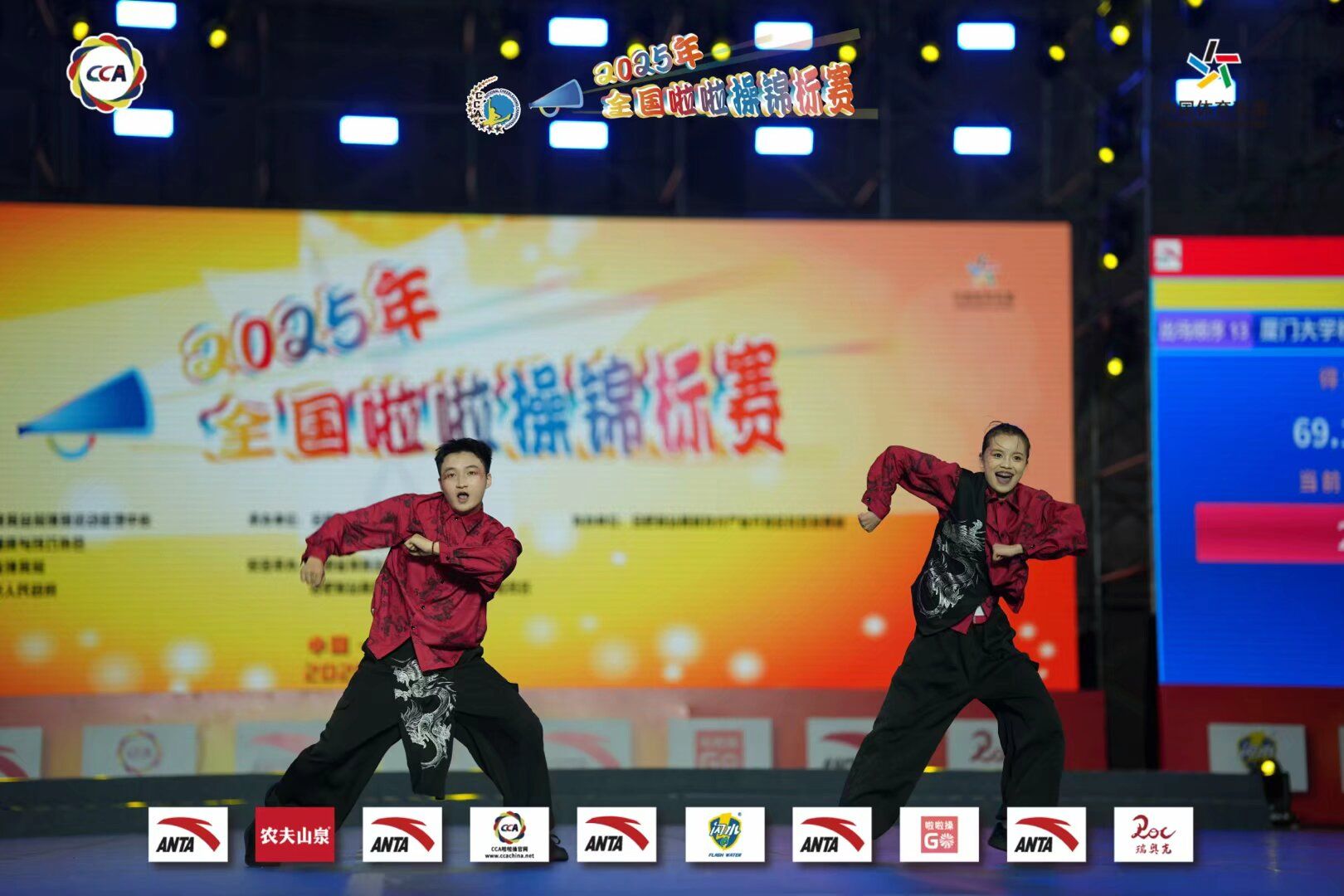 在 2025 年全国啦啦操锦标赛的激烈角逐中,BETWAY必威啦啦操队的明遥、邓博凭借出色的编排与发挥,荣获老员工公开青年乙组 - 双人街舞冠军。