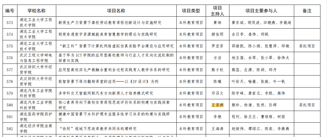 2024年12月25日,湖北省教育厅公示了《2024 年湖北本科高校省级教学改革研究项目拟立项名单》,体育部王亚洲、张园老师的教学改革研究项目成功获批立项。