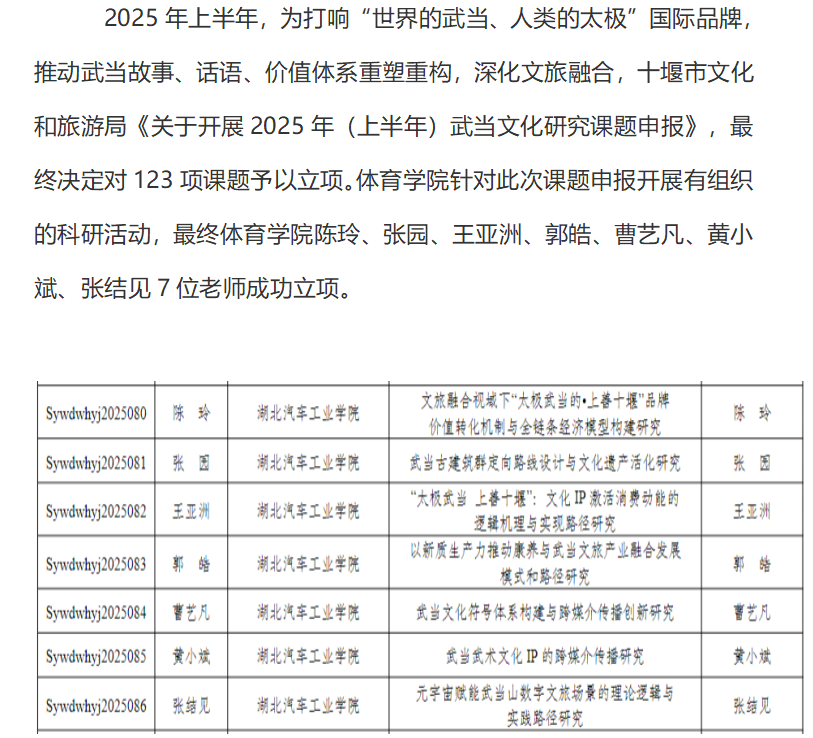 BETWAY必威7位老师申报《2025年(上半年)武当文化研究课题》获批立项