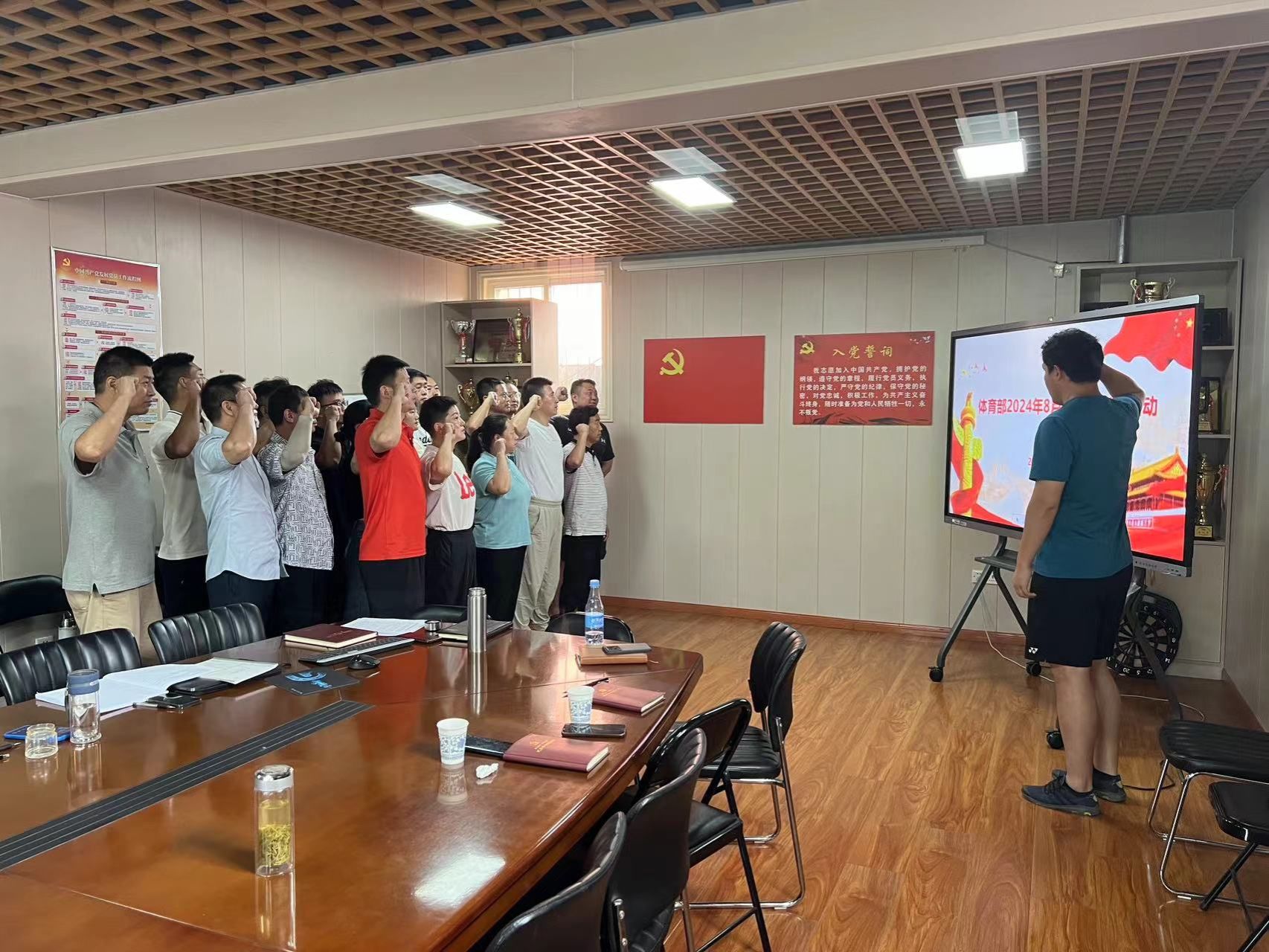 2024年8月30日上午,体育部全体党员在体育部会议室召开8月份主题党日活动,会议由第一党小组组长张然主持。