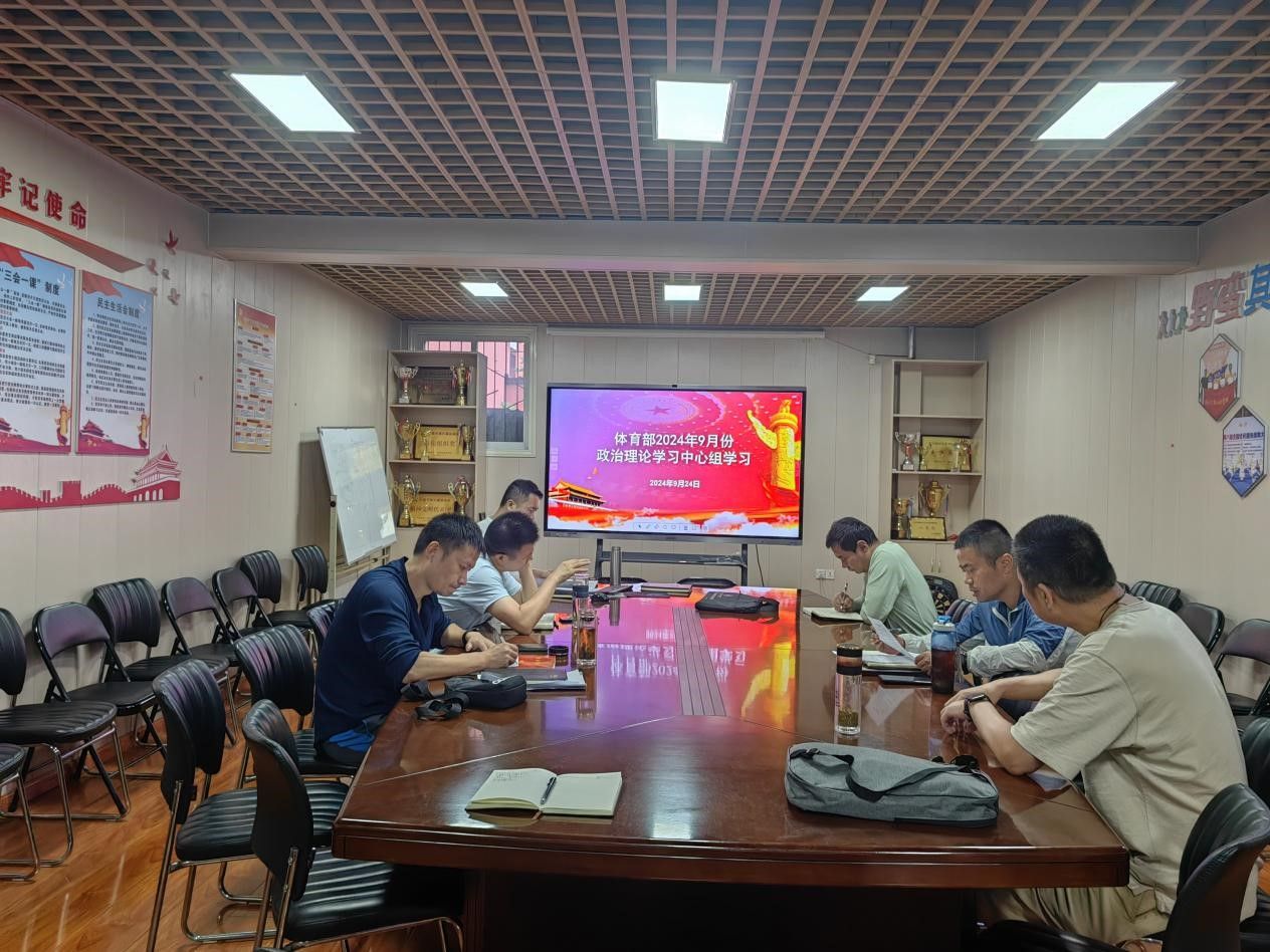 9月24日下午,体育部党支部在会议室开展9月份政治理论学习中心组学习,党支部副书记肖鹤主持,党支部委员、教研室主任、办公室主任参加了学习。