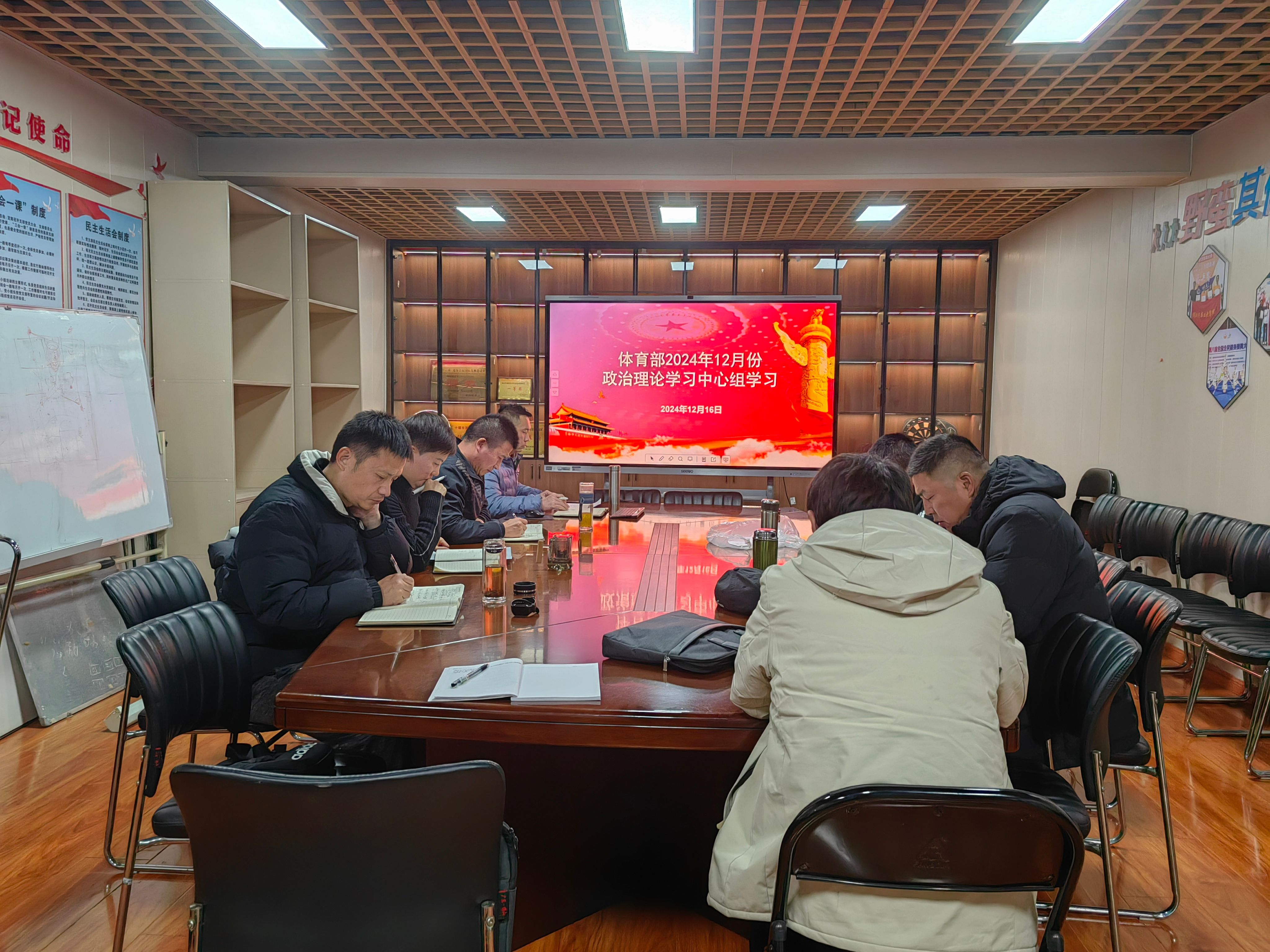 12月16日下午,体育部党支部在会议室开展12月份政治理论学习中心组学习会,党支部书记熊玲主持,党支部委员、教研室主任、办公室主任参加了学习。