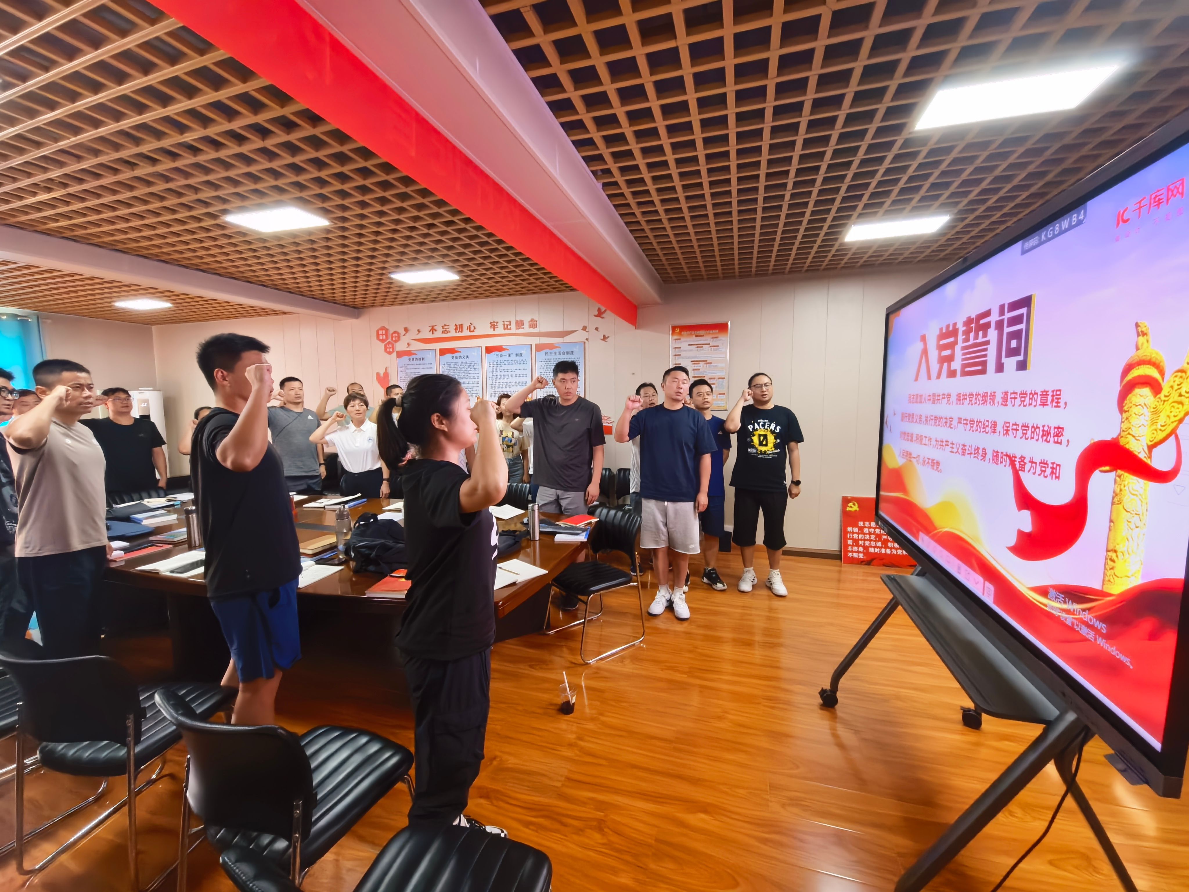 最后,在王亚洲同志的带领下,全体与会党员举起右拳,庄严宣誓,重温入党誓词。