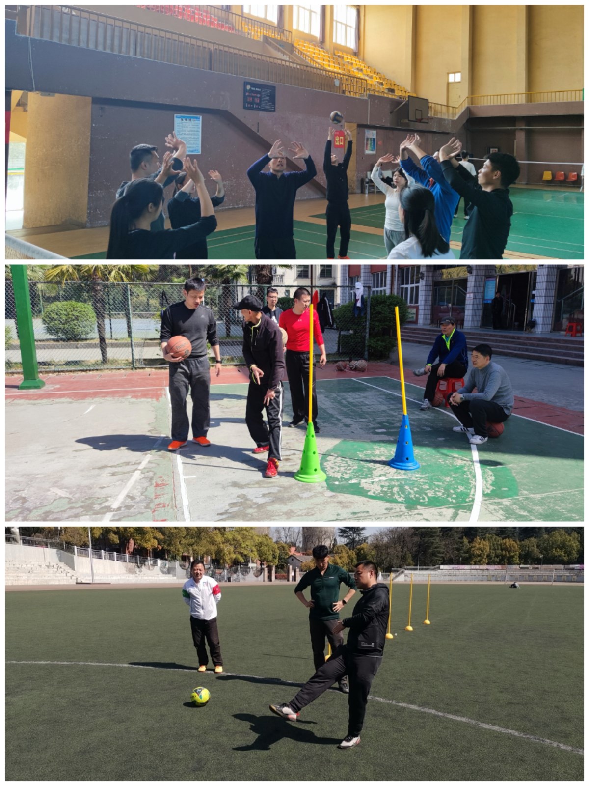 3月24日下午,体育课部教研室继续开展教学法系列活动——足球、篮球、排球第二次实践教学。活动由教研室主任石宏主持,体育课部全体20名教师参加了本次活动。