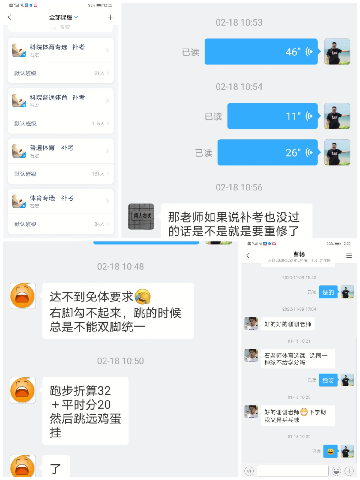 通过教学群、学习通等传媒,全力做好大一、大二员工的居家锻炼,尤其是在关注身体健康,注重环境卫生、饮食安全,加强锻炼,规律作息,增强体质和自身免疫力等方面的宣传教育,促进了员工自主锻炼,为迎接开学体育教学和体育课程补考奠定了基础。