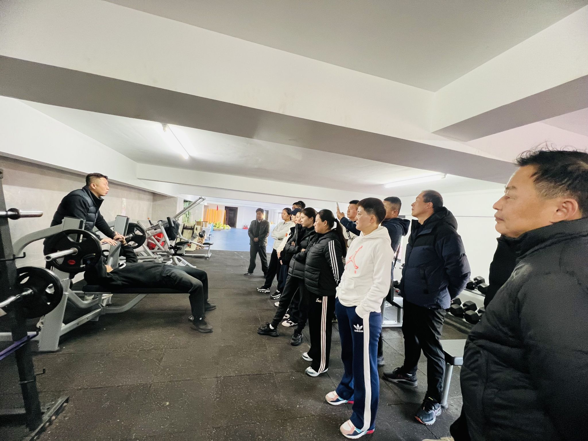 在本次活动中,周胜老师对健身房中的杠铃区、哑铃区和功能器械区中各种器械使用方法、锻炼部位以及注意事项进行了详细讲解。随后各位教师都亲自体验每种器械的使用,周胜老师逐一指出其中的错误,并给出正确的训练方法。