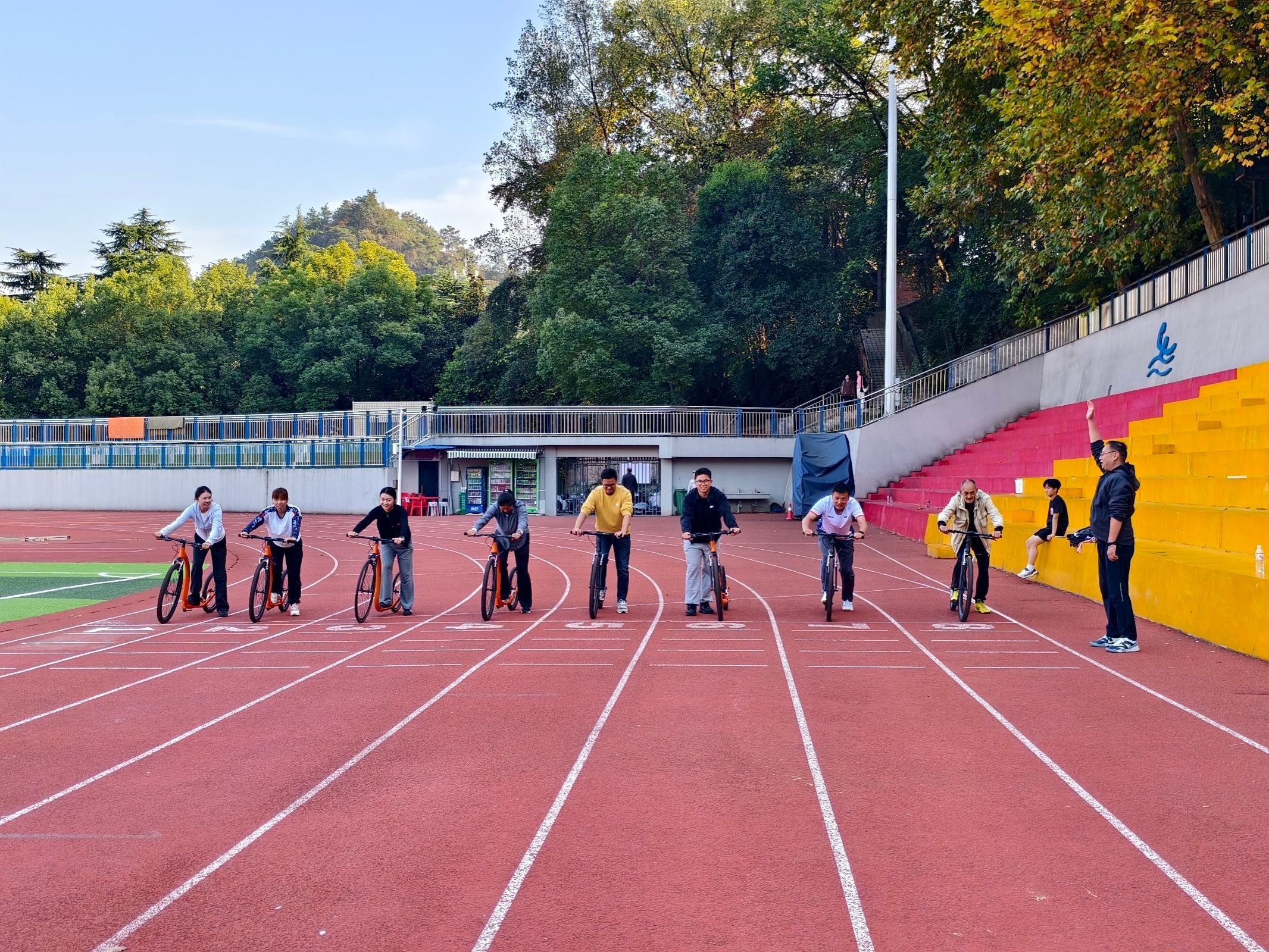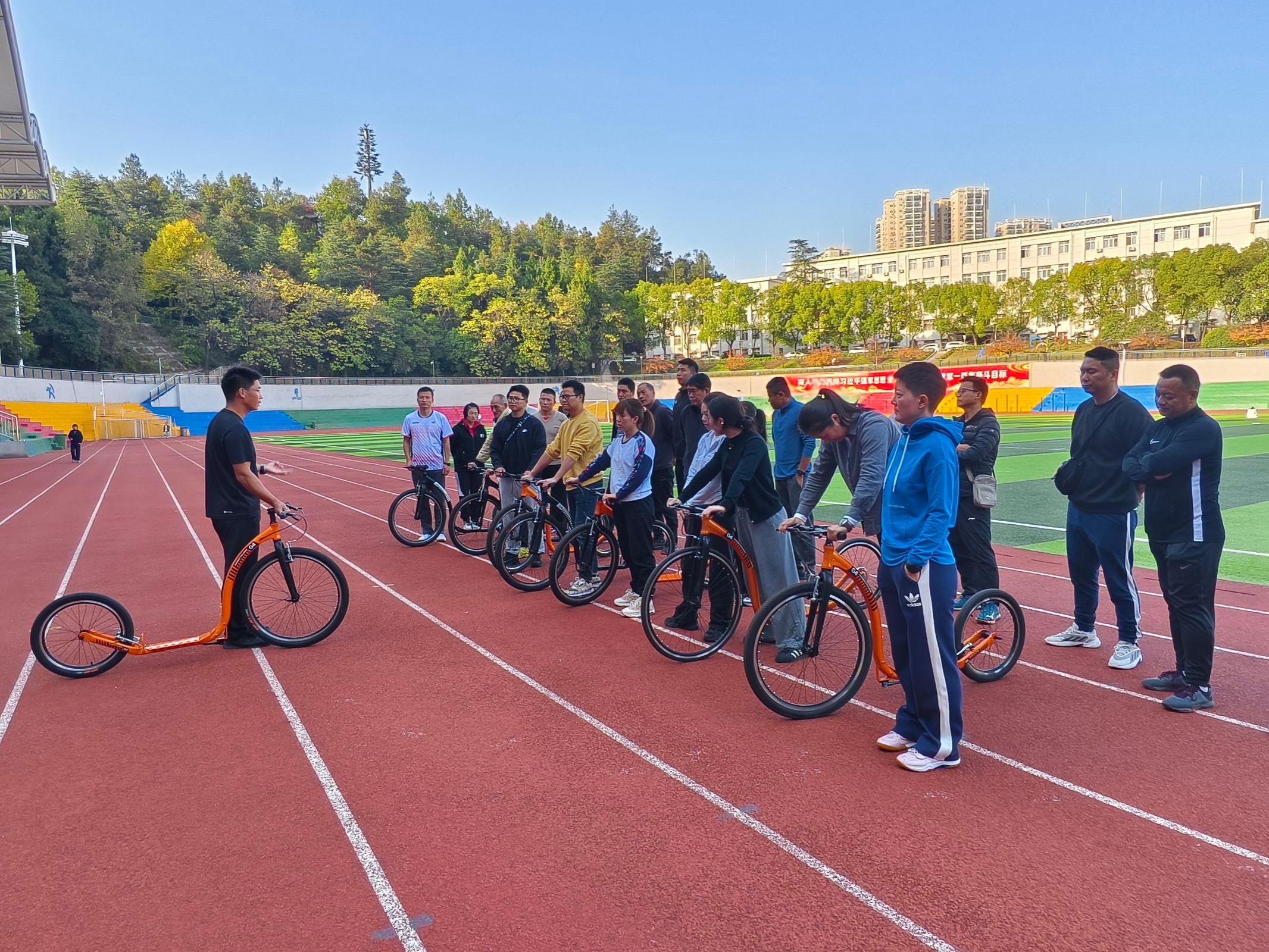为了进一步激发大家的参与热情,活动还安排了一场精彩的FOOTBIKE骑行竞赛。教师们分组进行比拼,你追我赶,场面十分激烈。此次FOOTBIKE技术实践活动不仅让教师们体验到了新兴体育项目的乐趣,还增强了团队凝聚力和合作精神。