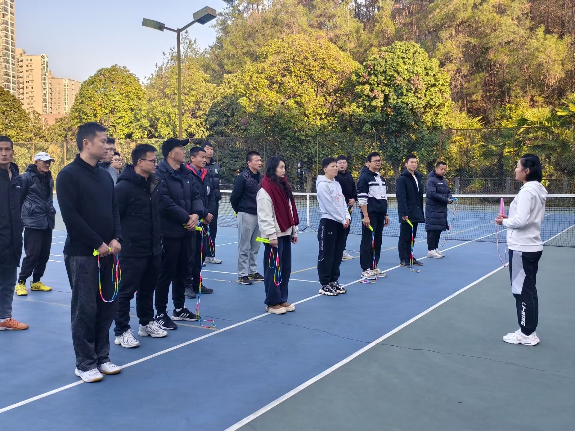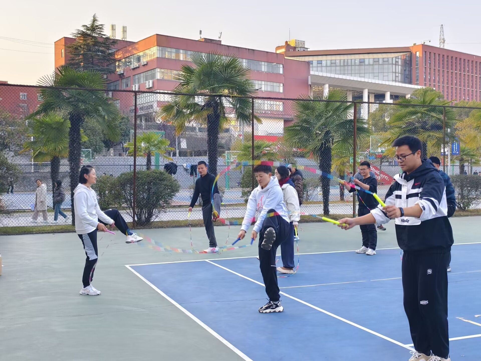 参与活动的教师们对这次难得的学习机会表现出了极大的热情。他们专心致志地聆听讲解,勤学苦练每一个动作,并积极与其他同事交流心得。通过此次活动,教师们不仅快速掌握了花样跳绳一级动作及其创新技巧,也初步了解了跳绳比赛裁判的基本规则和方法。更重要的是,许多教师表示将把所学内容引入日常教学中,继续深入研究花样跳绳,努力提高自己的专业水平,以期为员工们带来更丰富多样的体育课程体验。