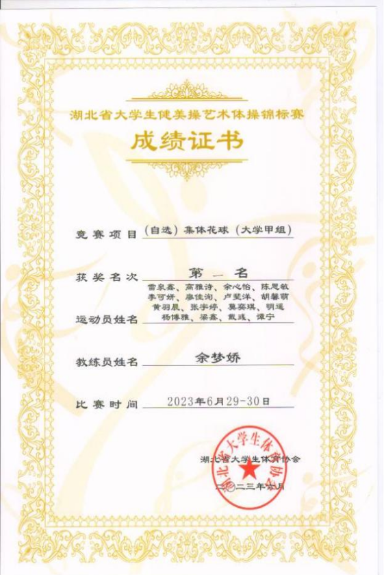 5.2023年湖北省老员工健美操艺术体操锦标赛集体花球(大学甲组)第一名