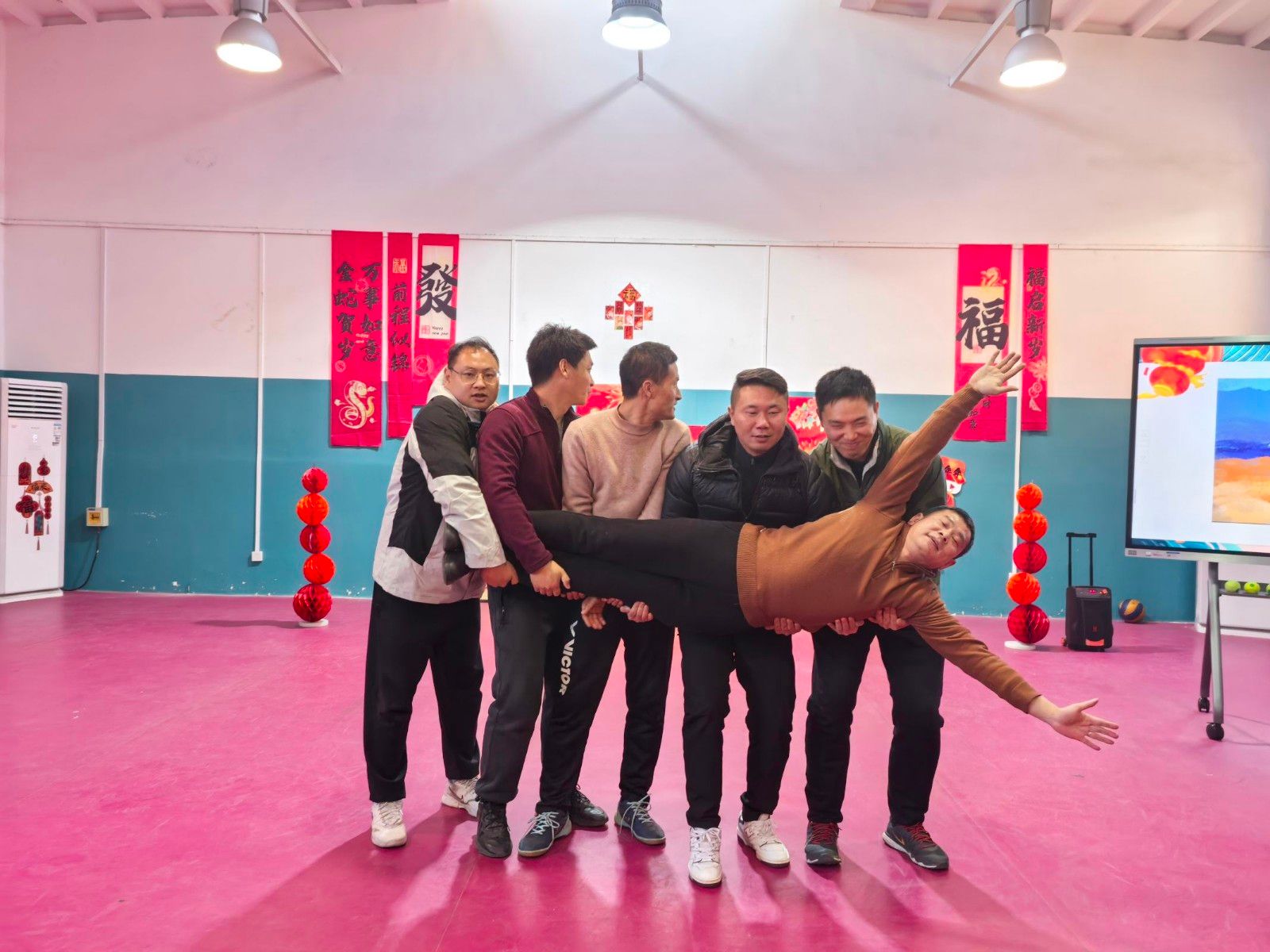 文艺表演环节同样精彩纷呈。教师们自编自导自演了多个节目,从激情四溢的合唱,到深情款款的対舞,再到创意无限的技能展示,每一个节目都展现了教师们多才多艺的一面,同时也传递了他们对体育事业的热爱与执着。在文艺表演之间,还穿插了多个轻松有趣的互动游戏,如“照相馆”“两人三足”“叠报纸”等,不仅增进了教师之间的友谊,也让整个晚会充满了欢声笑语。通过这些游戏,大家释放了工作的压力,享受了团队合作的乐趣。